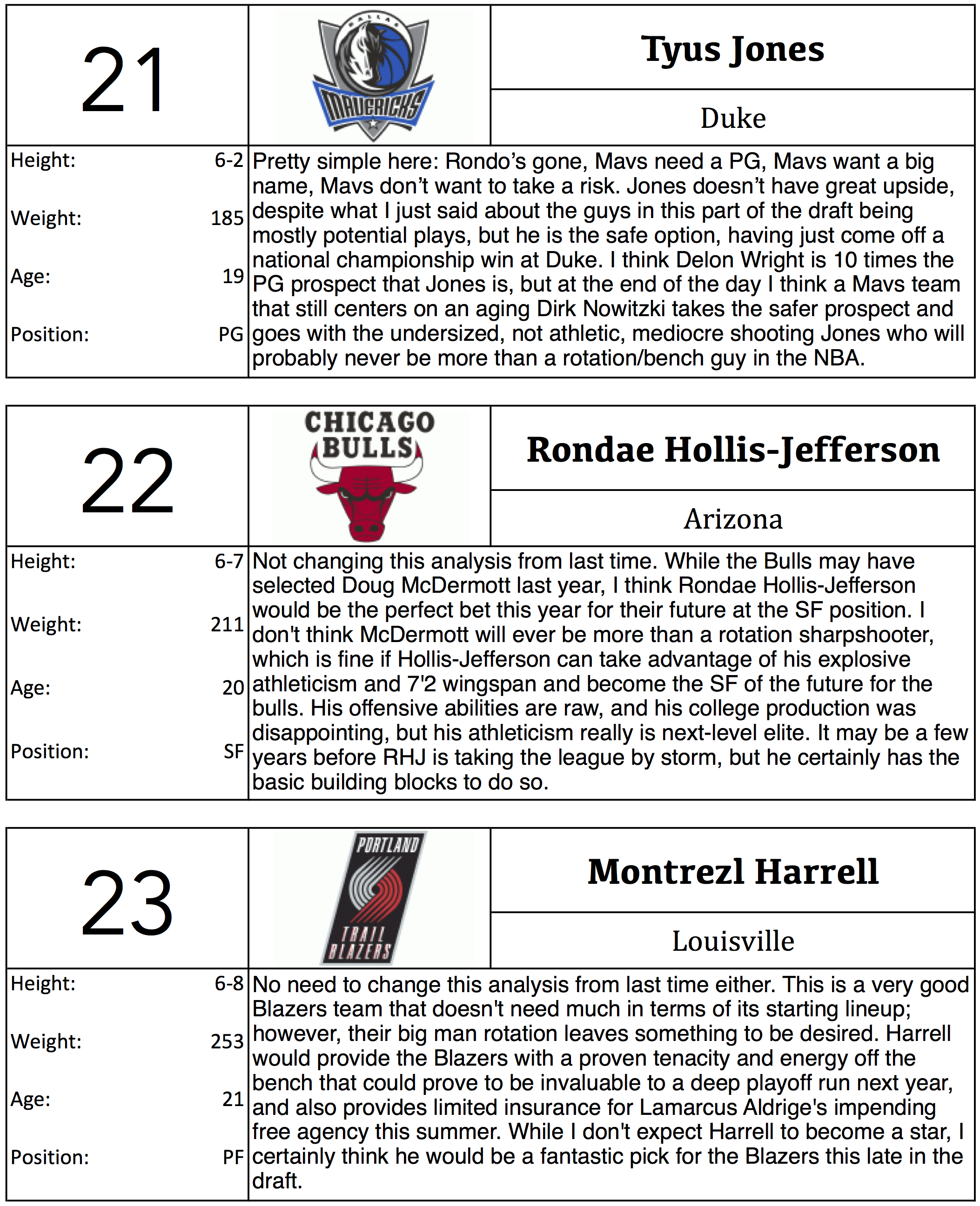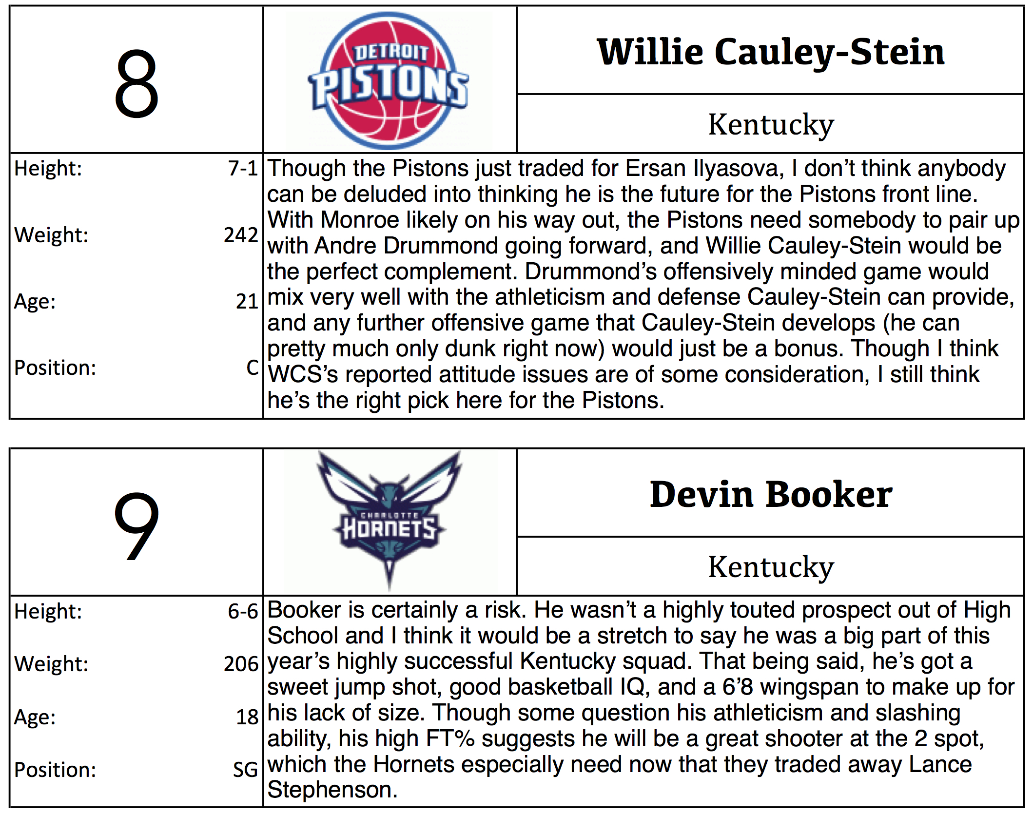 Ben Writes: For this Mock I tried to entertain more of the negatives of the prospects, as last mock I focused more on their potential. Additionally, in this mock I tried to entertain where I could see teams trading back more. I’m definitely going to do Mock 3.0 before the Draft next Thursday, though I can’t guarantee that I’ll be able to do a writeup for that one.