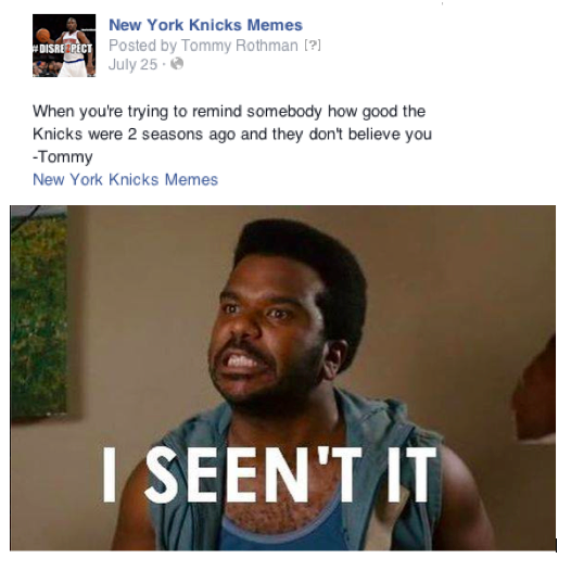 Best Knicks Memes The Best of the Best from our Memes page will go here. We will also post some exclusive content on this page as well! -Tommy Oct 2014 update (From Dec 2013 – Oct 2014) . . ————— Rate this:LIKE & SHARETweet Click to share on Reddit (Opens in new window) Reddit Share on Tumblr Click to print (Opens in new window) Print Click to email a link to a friend (Opens in new window) Email PocketLike Loading...